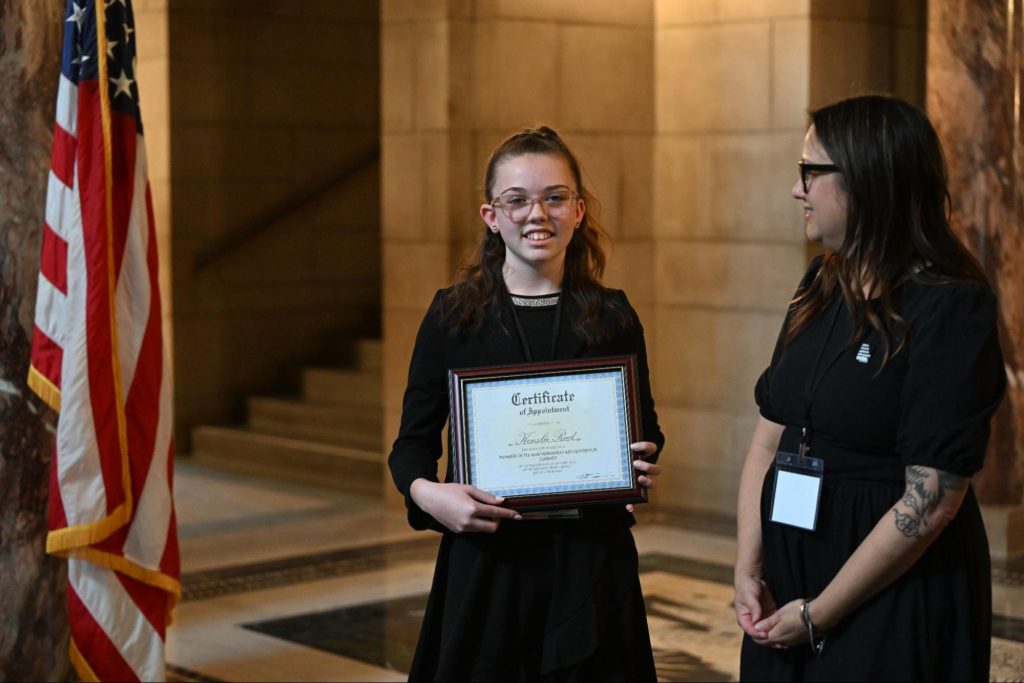 Hi, my name is Kenzlie and I was a final candidate in the 2025 Nebraska’s Kid Governor Cabinet. I’m now a member of the Kid Governor’s Cabinet working